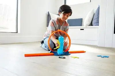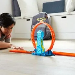 En loop fra Hot Wheels. Med denne morsomme pakken med banedeler kan du skape din egen Hot Wheels-loop! Koble sammen delene, og la bilen din få fart gjennom loopen med hjelp av boosteren. Koble sammen settet med andre deler fra Hot Wheels, og skap den ultimate bilbanen. En Hot Wheels-bil i skala 1:64 medfølger. Anbefalt alder: Fra 6 år.