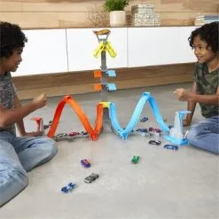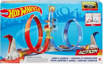 Med denne fartsfylte bilbanen fra Hot Wheels får du mange timer med morsom lek. Skyt av gårde Hot Wheels-bilene dine, og se når de tar fart gjennom den store loopen, eller juster banen til to spiralbaner. Når du har lekt ferdig, kan du enkelt trekke sammen bilbanen for praktisk oppbevaring. Kombiner gjerne med andre sett fra Hot Wheels, for å bygge lenger og kulere baner!Anbefalt alder: fra 5 år.