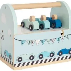 En racerbane med tilhørende biler og oppbevaringsboks, fra JaBaDaBaDo. Bygg racerbanen og konkurrer med bilene om hvem som kommer først i mål! Banen kommer i en praktisk trekasse med et grepvennlig håndtak, slik at du enkelt kan lagre og ta den med deg. Laget av stabilt og slitesterkt tre.Racerbanen inneholder:- 3 biler- Ett mål- 1 oppbevaringsboks med håndtak- 12 veibiterAnbefalt alder: fra 2 år.