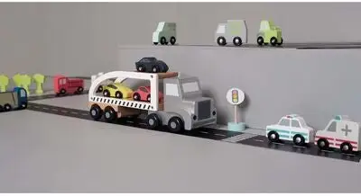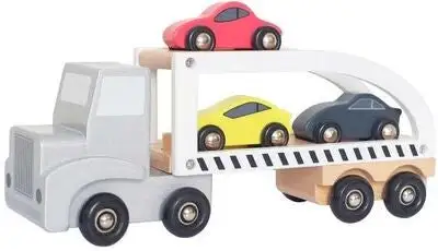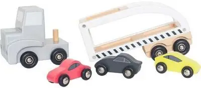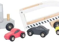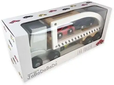 Et lekesett i tre fra Jabadabado, med lastebil og tilhenger samt tre småbiler. Lastebiltilhengeren har to etasjer, der du kan parkere bilene for transport. Tilhengeren kan også løsnes fra lastebilen.Anbefalt alder: Fra 18 måneder.