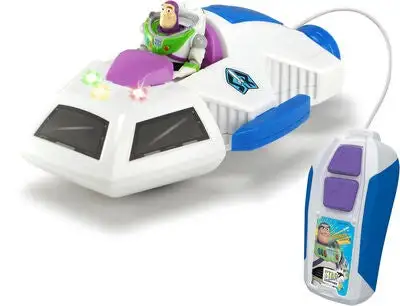 Kjempemorsomt romskip fra Disney Toy Story med en håndkontroll med en ledning. Det har en lyseffekt og en velkjent lekefigur. Perfekt for morsom lek. – CE-merket. – Mål: L 15 cm. – Anbefalt alder: fra 4 år. – Batterier inkludert.