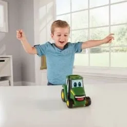 En søt John Deere leketraktor i myk plast, perfekt for de minste. Trykk ned traktoren og la den rulle i vei av seg selv. Anbefalt alder: 18 mnd +.