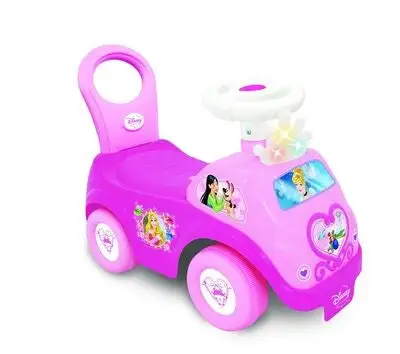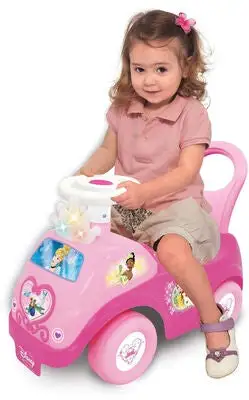 Søt, underholdende, rosa Disney Princess Activity Ride gåbil fra KiddieLand med et komfortabelt sete. Den har prinsessemotiver og søt musikk. Gåbilen har innebygde lydeffekter og magiske lyseffekter. – CE-merket. – Anbefalt alder: fra 12 måneder til 3 år. – Batterier inkludert.