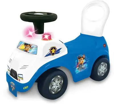 Robust, underholdende, blå, hvit Paw Patrol Lights n’ Sounds politibil fra KiddieLand med et komfortabelt sete. Den har innebygde lydeffekter og lyseffekter. Politibilen har motiver fra Paw Patrol. – CE-merket. – Anbefalt alder: fra 12 måneder til 3 år. – Batterier inkludert.