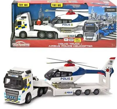 Majorette Grand Series Volvo FH-16 Svensk Politilastebil Med Helikopter