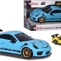 En kul oppbevaringboks designet som en Porsche 911 GT4, fra Majorette. Boksen har lyd- og lysfunksjoner, og er et perfekt sted å oppbevare småbilene sine på. Inni er det plass til ni småbiler, fordelt på to etasjer. Leveres med en liten sportsbil. Anbefalt alder: 3 år +.