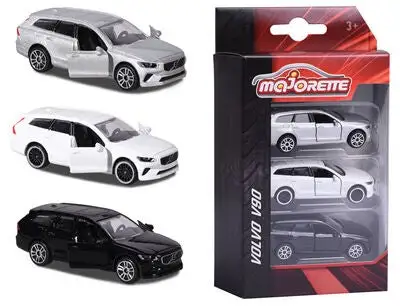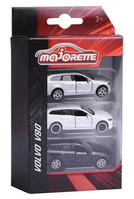 Et lekesett med tre små biler, fra Majorette. Bilene er modeller av Volvobilen V90 i riktig skala, med forskjellige flotte farger. Bilene er laget av plast og metall av høy kvalitet, og er utstyrt med bevegelige hjul og åpningsbare dører.Anbefalt alder: fra 3 år.