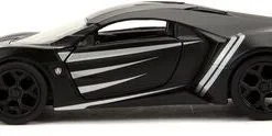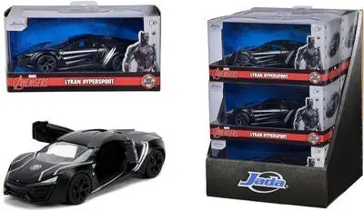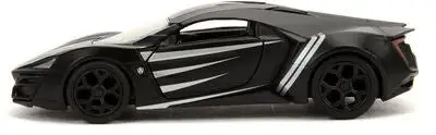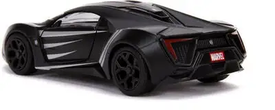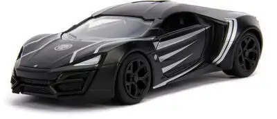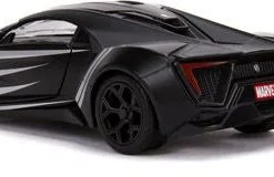 Den kule metallfiguren Black Panther fra Marvel suser nå rundt i gatene med sin Lykan Hypersport. Bilen er utstyrt med frihjul, gummidekk, åpningsbare dører, panser, en justerbar vinge og detaljert interiør. Dra ut på eventyr med Black Panther i hans raske bil for å redde mennesker i nød!Anbefalt alder: fra 8 år.