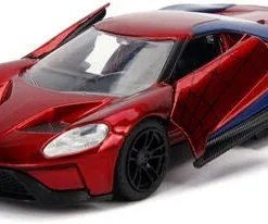 Den kule metallfiguren Spider-Man fra Marvel suser nå rundt i gatene med sin Ford GT 2017. Bilen er utstyrt med frihjul, gummidekk, åpningsbare dører, panser, en justerbar vinge og detaljert interiør. Dra ut på eventyr med Spider-Man i hans raske bil og redd mennesker i nød!Anbefalt alder: fra 8 år.