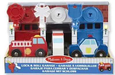 En redningsgarasje med biler og nøkler fra Melissa & Doug. Bak de tre dørene gjemmer det seg tre biler, klare til å rykke ut. Match de tre nøklene med riktig farge på låsen for å låse opp døren og kunne åpne garasjeporten. Trykk deretter på knappen for å felle ut rampen og sende bilene på redningsoppdrag. I garasjen kan du lagre bilene, takket være det praktiske håndtaket kan du ta den med deg overalt.Anbefalt alder: Fra 3 år.