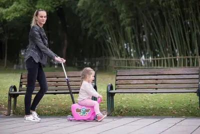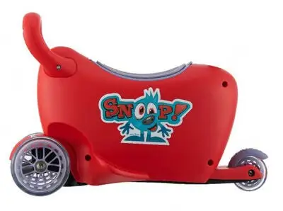 Snoop! er en smart gåbil og sparkesykkel i ett. Kjøretøyet kan styres av en voksen med det praktiske foreldrehåndtaket, som også kan tas helt av, slik at barnet kan bruke Snoop! som en gåbil. Du kan også forvandle Snoop! til en heftig sparkesykkel, ved å fjerne setet på gåbilen og montere tilbake foreldrestangen, som da blir styret på sparkesykkelen. – Lett konstruksjon- Aluminiumstyre, som også fungerer som foreldrestang- komfortabelt sete med oppbevaringsrom under luken- Tre stillegående gummihjul- Komfortable og sklisikre håndtak- Tre høydeinnstillinger på styret- Slitesterkt, bredt og sklisikkert ståbrett- Fotbrems på bakhjuletAnbefalt alder: Fra 18 måneder.