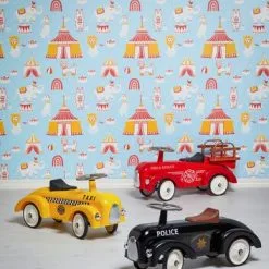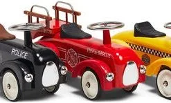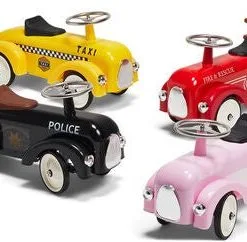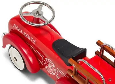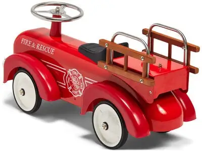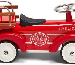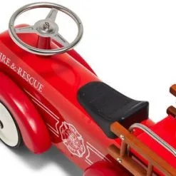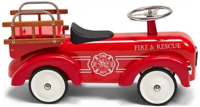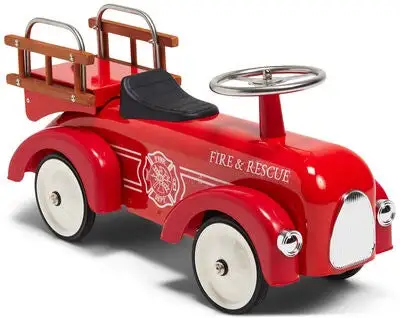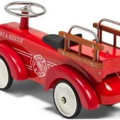 En detaljert gåbil i brannbilinspirert retrostil. Gåbilen er laget i slitesterk metall med gummihjul. Den har sete, bensinlokk og andre kule detaljer. En gøyal leke for fartfylte eventyr, som også er en fin detalj på barnerommet! Anbefalt alder: Fra 2 år.