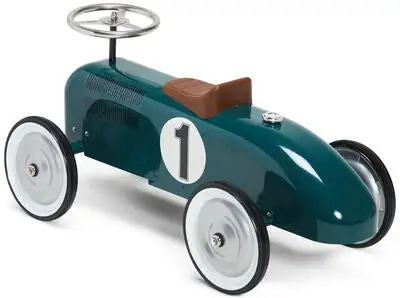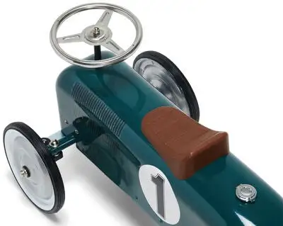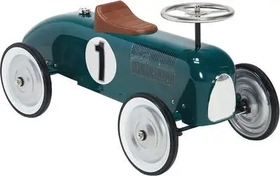 En detaljert gåbil med retro racerbildesign. Den har en smal svingradius, og et grepsvennlig ratt. Metallet er kvalitetssikret, og egenvekten gjør gåbilen solid og lett for barnet å kjøre rundt på. Barnet sitt komfortabelt på det formede setet. En fin innredningsdetalj på barnerommet, og et ypperlig leketøy. Anbefalt alder: 2 år +.
