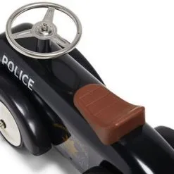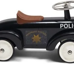 En detaljert gåbil i politiinspirert retrostil. Gåbilen er laget i slitesterkt metall med gummihjul. Den har sete, bensinlokk og andre kule detaljer. En gøyal leke for fartfylte eventyr, og er samtidig en fin detalj på barnerommet! Anbefalt alder: Fra 2 år.