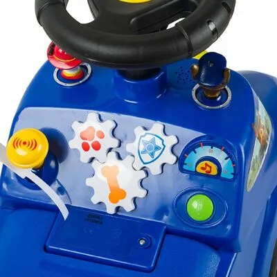 Blå gåbil fra Paw Patrol med morsomme lydfunksjoner som barnet ditt kan utforske. Den har et håndtak bak. – CE-merket. – Anbefalt alder: fra 12 måneder. – 100 % plast. – Batteri: 2 x AA (inkludert). – Batterier inkludert.