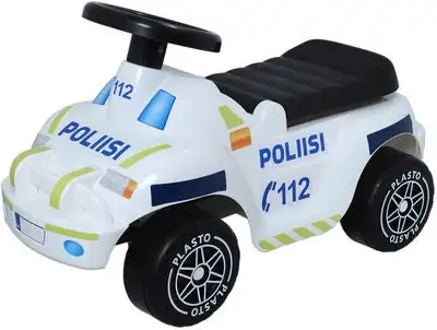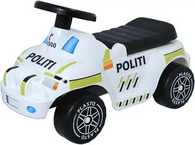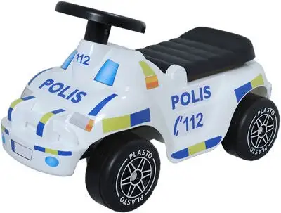En kul gåbil fra Plasto. Gåbilen er utstyrt med ratt og fire solide, stillegående hjul. Denne leken utvikler både barnets koordinasjon og motorikk, og finnes i flere forskjellige farger. Med bilen får du klistremerker til norske, svenske og finske politibiler, slik at du kan dekorere bilen akkurat sånn du vil!Anbefalt alder: Fra 12 måneder.