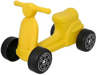 En gul gåbil fra Plasto, som ser ut som en scooter. La barnet ditt ta seg framover med stil på denne sittesparken med stillegående hjul! Alle produkter fra Plasto er produsert på Åland.Anbefalt alder: Fra 18 måneder.