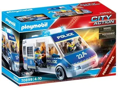 Kul 70899 City Action politibil fra Playmobil med stor plass bak. Den har spennende sirener og blinkende lys. Politibilen har to medfølgende figurer og flere, morsomme tilbehør perfekte for mange timers morsom lek. Samle på alle delene i serien. – Deler: 52– CE-merket– Anbefalt alder: fra 4 år– Ikke egnet for barn under 3 år, på grunn av små deler– Batteri: 1 AAA (ikke inkludert)