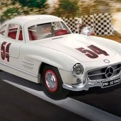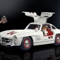 Sporty 70922 Mercedes-Benz 300 SL bil fra Playmobil. Mercedes-Benz er en klassisk sportsbil med et spesielt utseende, nå i PLAYMOBIL-format. Med sine måkevingedører, direkte bensininnsprøyting og rørformede ramme, har 300 SL en gjenkjennelsesverdi som ingen annen bil. Bilen har detaljer som støtfangere, kjølegrill og hjulkapsler med en kromlook og morsomme tilbehør i 50-tallslook. For å plassere figurene, feller du opp dørene. Verktøykassen oppbevares i bagasjerommet. Ved hjelp av tavlen kan føreren holde seg informert om sin posisjon under racet. – CE-merket– Ikke egnet for barn under 3 år– Anbefalt alder: fra 5 til 12 år