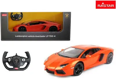 Sporty, oransje Lamborghini 1/10 bil fra Rastar i ABS-plast med en lettstyrt håndkontroll. Den har et uavhengig fjæringssystem. Perfekt for mange timers morsom lek. – CE-merket– EN 71-sertifisert– Anbefalt alder: fra 6 år– Drevet av AA-batterier (ikke inkludert)