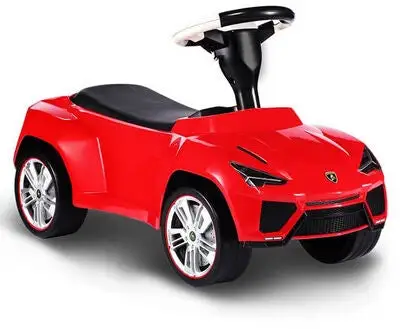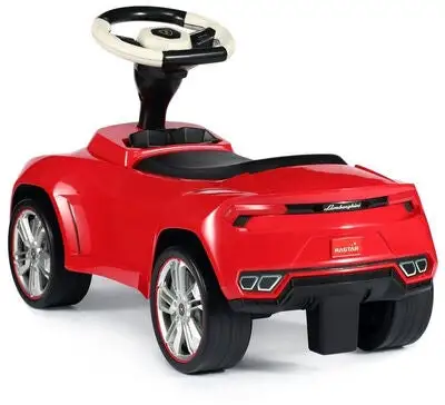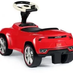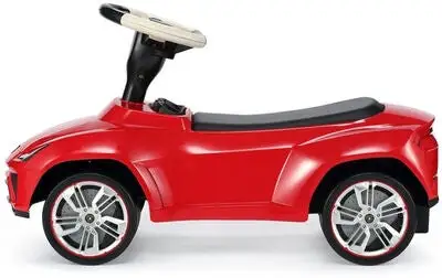 Dette er en kul gåbil som forestiller en Lamborghini i miniformat. Sparkebilen har en flott rød farge, og er dekorert med realistiske detaljer. Det stilige skinnsetet og det fungerende styrerattet gir barna en fantastisk kjøreopplevelse. Anti Slippery-dekk forhindrer at det går for fort. Sett deg til rette på det komfortable setet, og spark i vei! Anbefalt alder: fra 18 måneder.