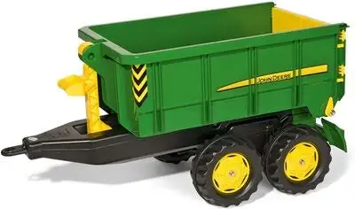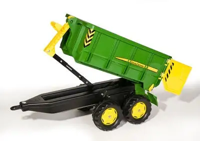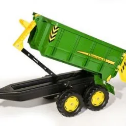 John Deere Container fra Rolly Toys, beregnet for å kobles til din traktor fra Rolly Toys. Last på med gress, jord, steiner eller andre valgfrie ting. Tilhengeren har en vippefunksjon bak, åpningsbare og låsbare dører, og den kan senkes ned til bakken. Lett å feste og løsne.Denne fine containertraileren gjør traktorleken morsom og allsidig. Perfekt for små bønder!Anbefalt alder: Fra 3-10 år.