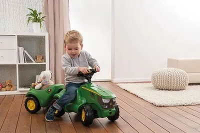 Traileren John Deere Mini fra Rolly Toys, et morsomt tilbehør til Rolly Minitracs pedaltraktorer. En fin og praktisk liten henger med plass til gress, sand – eller kanskje favorittlekene dine. Gjør traktorleken enda morsommere med gøyale tilbehør!Anbefalt alder: Fra 1,5 år.