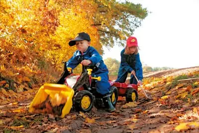 Rolly Toys Traktor med Graveskuffe+Henger Kid er en riktig fin traktor som holder høyeste kvalitet. Den har åpningsbart panser med fine detaljer. Pedalene kan justeres for att tilpasse avstanden til setet, sånn at de passar til barnets benlengde. Denne heftige traktoren en stor frontskuff som kan laste en masse sand/grus. Hengeren kan kobles på og av.Mål: 161x47x55 cm (lengde med henger).Vekt: 7,8 kg. For barn mellom 2,5 år og 5 år.Farge: Rød.