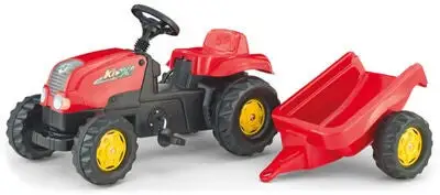Rolly Toys Traktor med Henger Kid Rød er en riktig fin traktor som holder høyeste kvalitet. Den har åpningsbart panser med fine detaljer. Pedalene kan justeres for å tilpasse avstanden til setet, sånn at det passer til barnets benlengde. Hengeren kan kobles på og av.* Mål: 134x47x52 cm (lengden med henger)* Vekt: 7,8 kg. * For barn mellom 2,5 år og 5 år. * Farge: Rød.