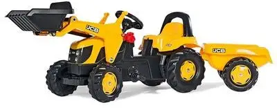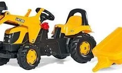 Trampetraktoren JCB fra Rolls Royce er en fin og robust traktor for de aller minste. Du kan grave både jord, grus og sand med traktoren og den har en tilhørende tilhenger som kan lastes med frivillig gods. Traktorens kalesje kan åpnes, akkurat som på ekte. Det finnes mange tilbehør å kjøpe til traktoren, noe som gjør leken enda mer gøyal. Bytt mellom ulikt tilbehør og få en allsidig leke! En gøyal og robust traktor for små gravemaskinister! Funksjoner: – Kalesje som kan åpnes – Kobling på baksiden – Styring med svingbar plate- Justerbar kjedespenning – Beskyttet kjededrift- Robust styre – Tilhenger medfølger og tilbehør kan legges til Anbefalt alder: Fra 2,5 år.
