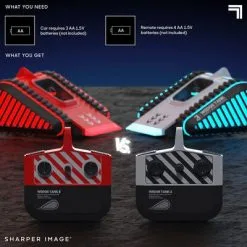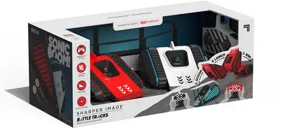 Battle Wedge Tanks radiostyrte biler fra SharperImage. Kule romstridsvogner som kan velte seg over alt som kommer i veien. Målet med spillet er å velte motstanderen din, gjør alt du kan for å komme under motstanderens kjøretøy. Du kan skru opp hastigheten hvert 30. sekund med turboboost! Den kraftige 2,4 GHz-frekvensen sikrer lang rekkevidde og høyhastighetsdrift uten forstyrrelser utenfra. Battle Wedge-tankene har LED-lys som lyser under kjøring. – CE-merket– Anbefalt alder: fra 3 til 8 år– Batteri: 3 AA (ikke inkludert)– Batteri: 4 AAA (ikke inkludert)