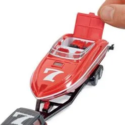 Siku Bil med Motorbåt er en tøff bil med motorbåt på henger. Transporter motorbåten til vannet, og kjør deretter båten! Passer perfekt til alle små båtelskere!Anbefalt alder: fra 3 år.Mål: H 9 x B 5 x L 34 cm. Materiale: metall og plast.Farge: rød.