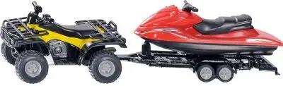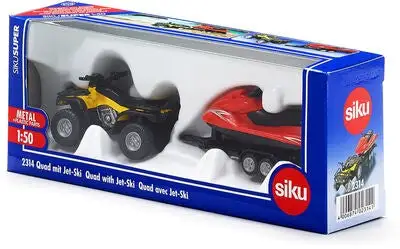 Et morsomt lekesett med firehjuling, tilhenger og Jet-Ski, fra SIKU! En imponerende modell i barnevennlig skala 1:55. Jet-skien flyter og kan brukes som leke i badekaret. Firhjulingen har imponerende detaljer og autentiske funksjoner. Anbefalt alder: 3 år +.