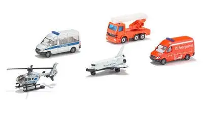 I dette flotte gavesettet fra SIKU, får du fem heftige arbeidskjøretøy.Settet inneholder: – Fly- Politibuss- Helikopter- Redningstjenestebil- KranbilAnbefalt alder: Fra 3 år.