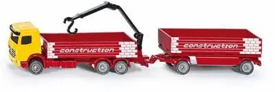 En kul lastebil med byggemateriale fra SIKU! Lastebilen brukes til å transportere byggemateriale til byggeplasser verden rundt. Den rotérbare kranen med sin robuste krok kan laste tilhengerne fulle med ulike materiale. Et kjøretøy med virkelighetstro detaljer!Anbefalt alder: 3 år +.Mål: 26 x 4,8 x 7,5 cm.Skala: 1:87.Materiale: metall/plast.Farge: flerfarget.