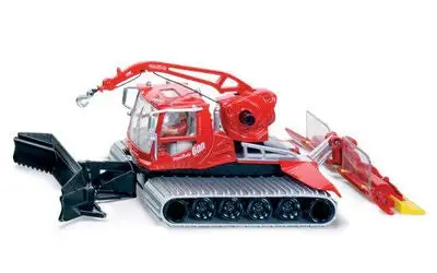 En løypemaskin til snøryddingsarbeid fra SIKU. En heftig maskin med bevegelige larveføtter. Frontskjæret og den bakmonterte sleden med slodd, kan vippes opp og ned og vinkles til høyre og venstre. Den er utstyrt med en bevegelig kran, som du enkelt feller opp og ned med de to styrehjulene på siden. Anbefalt alder: Fra 3 år.
