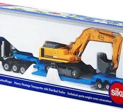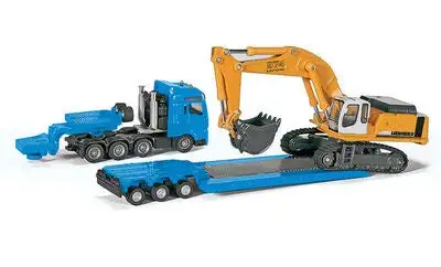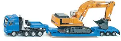 MAN TG-A, en kul transportbil med tilhenger fra SIKU. Kjøretøyet kommer i et imponerende format, som en 2-akslet tung transportør. Lastebilen har en kobling som passer til den medfølgende 3-akslede tilhengeren. Tilhengeren er utstyrt med brukervennlig mekanikk beregnet for barn, så det er ikke noe problem å koble den fra. En Liebherr gravemaskin er inkludert i settet. Et spennende leketøy med realistiske detaljer!Anbefalt alder: Fra 3 år.