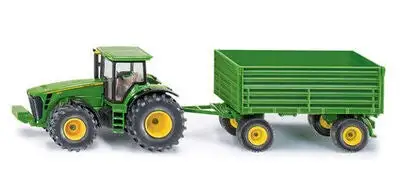 En John Deere-traktor med tilhenger i skala 1:50 fra SIKU. Bruk tilhengeren for å frakte stein, jord og avling dit det skal. Tilhengeren har tippfunksjon og bevegelig lem, slik at den enkelt kan tømmes. Anbefalt alder: Fra 3 år.