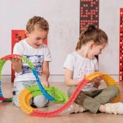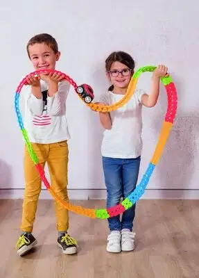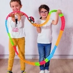 Flextreme Starsett er en kul bilbane fra Smoby. Settet har hele 184 deler, som barnet ditt kan bygge sammen til en bilbane på over 4 meter! Delene klikkes enkelt fast i hverandre, og den smarte designen gjør at barnet enkelt kan bøye banen nesten hvordan det skal være. En bil med fungerende lys inngår. Anbefalt alder: 4 år +.
