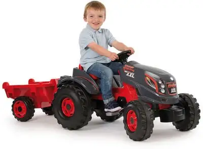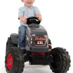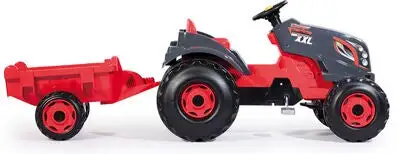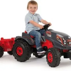 Smobys Stronger XXL er en tøff trampetraktor med henger. Traktorens sete er justerbart og rattet er utstyrt med en fløyte. Den brede hengeren lar deg frakte sand, steiner eller leker uhindret.Anbefalt alder: 3 år +.Mål: 56 x 161 x 59 cm.Materiale: Plast, metall.