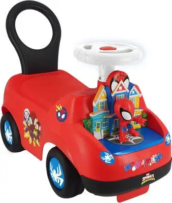 Gåbil fra Spidey and His Amazing Friends med et lekent design med flere, kule detaljer. Den har et ratt med et horn og et spennende instrumentbrett med morsomme knapper og lyd- og lyseffekter. Perfekt for mange timer med moro. – CE-merket. – Anbefalt alder: fra 12 måneder. – Batteri: 2x AA (ikke inkludert).