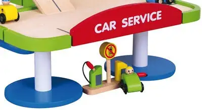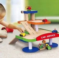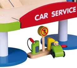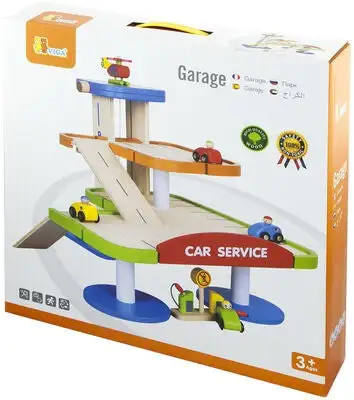 En morsom garasje i tre fra VIGA, med tilhørende biler, helikopter og bensinstasjon. La helikopteret lande på landingsstedet øverst på garasjen. Passer bommen for å kjøre bilene opp på rampen til den første eller andre parkeringsetasjen. Husk å fylle bilen med bensin, før du kjører i vei ut av parkeringshuset!Hele settet er håndmalt, og laget i et fint tremateriale, slik at leken holder år etter år. Settet inspirerer til lek, og utvikler både barnets fantasi og motoriske ferdigheter. La leken begynne, med gassen i bånn!Settet inneholder:- 1 garasje- 4 biler med figur- 1 helikopter- 1 bensinstasjon Anbefalt alder: Fra 3 år.