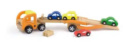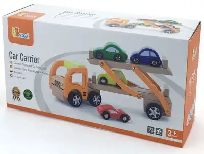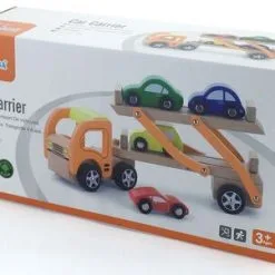 VIGA Lastebil med biler er en kjempemorsom trelekesakepakke med en lastebil og fire biler. Lastebilen har to etasjer og kan plukke opp og laste 4 ulike biler. Fell ned overdelen for å lage en lang rampe så bilene kan kjøre av og på. Laget av høykvalitets tre og lakkert med giftfri lakk. Lekesettet utvikler barnets motoriske egenskaper og logisk tenking. Anbefalt alder: Fra 3 år. Forpakningens størrelse: 28 x 14 x 8 cm.Materiale: Tre og plast.