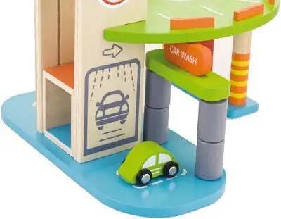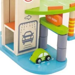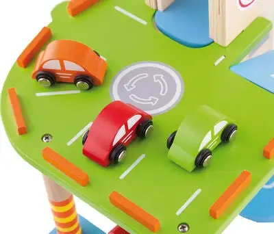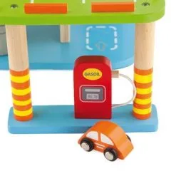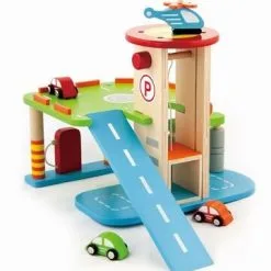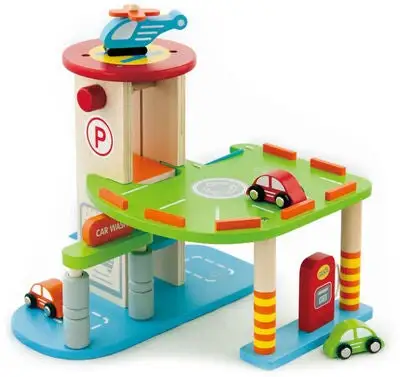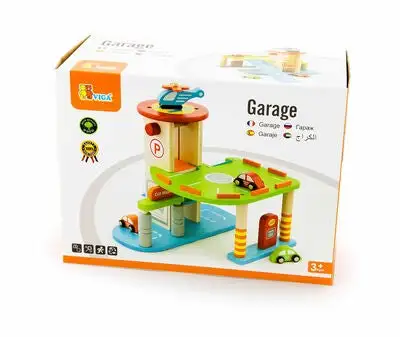 VIGA Parkeringshus er en kjempemorsom garasje der du kan parkere tre sjarmerende småbiler og et helikopter. La helikopteret lande på helikopterplaten øverst på garasjen etter en lang flytur. Kjør opp på den brede blå rampen med bilene og parker i andre etasje. Vask bilen i bilvaskeriet slik at den blir ordentlig ren før du tar heisen opp til andre etasje. Besøk bensinstasjonen og fyll bensin før bilen er klar til å reise av gårde! Lekegarasjen og tilbehøret er håndmalt og tilvirket i tre for best mulig holdbarhet. Inspirerer til mange timer full fart med gassen i bånn!Inneholder:1 garasje3 småbiler1 helikopterAnbefalt alder: Fra 3 år.Sikkerhet:- Ikke egnet for barn under 3 år.