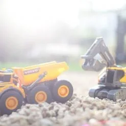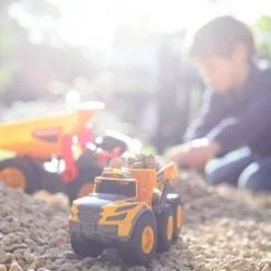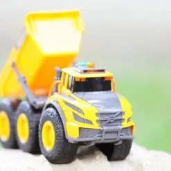 En superkul dumper fra Dickie, i realistisk Volvomodell. Lekebilen har bevegelige deler, frihjul, og lyd og lys. Anbefalt alder: Fra 3 år.