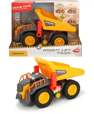 En kul dumper fra Dickie, i realistisk Volvomodell. Lekebilen har bevegelige deler, samt lyd og lys, og den kan registrere 3 forskjellige vekter. Anbefalt alder: Fra 3 år.