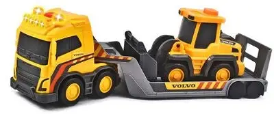 En gøyal lastebil fra Dickie, i en detaljert Volvo-modell. Lastebilen har frihjul, avtagbar tilhenger og lys- og lydfunksjoner. På tilhengeren står en hjullaster, med en bevegelig skuffe som enkelt kan lastes av og på. Perfekt for alle kjøretøys-entusiaster! – Lastebil med avtagbar tilhenger: 32 cm – Hjullaster med bevegelig skuffe: 9 cm – Lys- og lydfunksjoner Anbefalt alder: fra 3 år.
