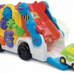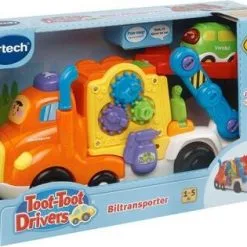 Toot Toot Drivers Biltransport er et interaktivt lekesett med lyd, lys og mange morsomme funksjoner. Senk rampen for å laste på og av kjøretøy, vri og spinn på tannhjulene, tut med hornet eller lek at du fyller drivstoff. Lekesettet har 3 SmartPoint-punkter. Når bilen plasseres på disse reagerer det med forskjellige uttrykk, musikk og lydeffekter (på svensk). Et lærerikt og morsomt leketøy som inviterer til fantasifull lek og hjelper til med å utvikle barnets finmotorikk. Biltransporten er kompatibel med alle Toot-Toot Drivers lekesett og Smart Point kjøretøy. En minibuss som kan kjøres opp på tilhengeren er inkludert (andre kjøretøy selges separat). Bilen kan transportere opptil fire biler.