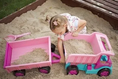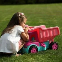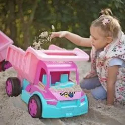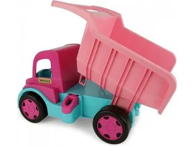 Giant Tippbil Rosa, fra Wader. En stor og morsom lekebil med en tippevogn som kan åpnes, samt et komfortabelt håndtak. Den store fordelen med leketøyet er den solide og holdbare strukturen, med en lastekapasitet på opptil 150 kg.Det som kjennetegner Giant Tippbil er den fine kvaliteten på utførelsen, trygge avrundede kanter og holdbarheten i strukturen. Lastebilen er laget av materialer av høyeste kvalitet, som er trygge for barn. Den vil gi barna mange timer med moro, og varer i flere år!Anbefalt alder: Fra 12 måneder.