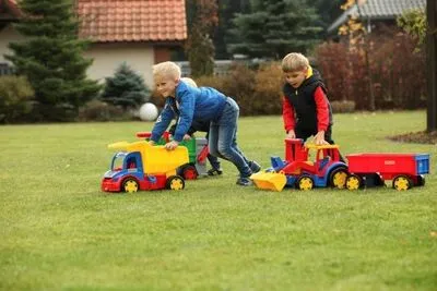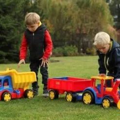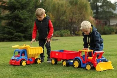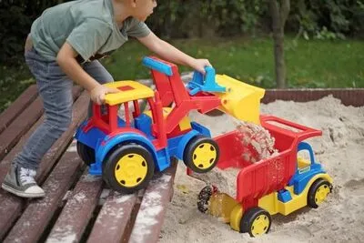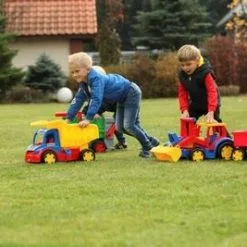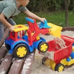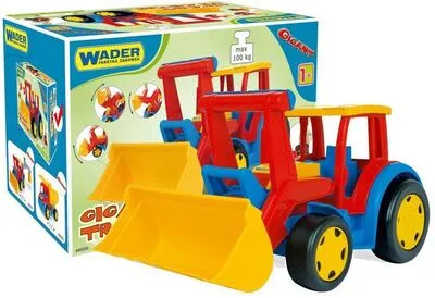 En stor og heftig traktor, fra Wader. Traktoren er 60 cm lang, med en realistisk design. Den justerbare skuffen kan brukes som bulldozer eller laster, som gir mange timer med underholdning. Den store fordelen med kjøretøyet er den solide konstruksjonen, holdbarheten og styrken. Leken er laget av materialer av høyeste kvalitet, som ikke er giftige og tåler all slags vær.Anbefalt alder: Fra 12 måneder.